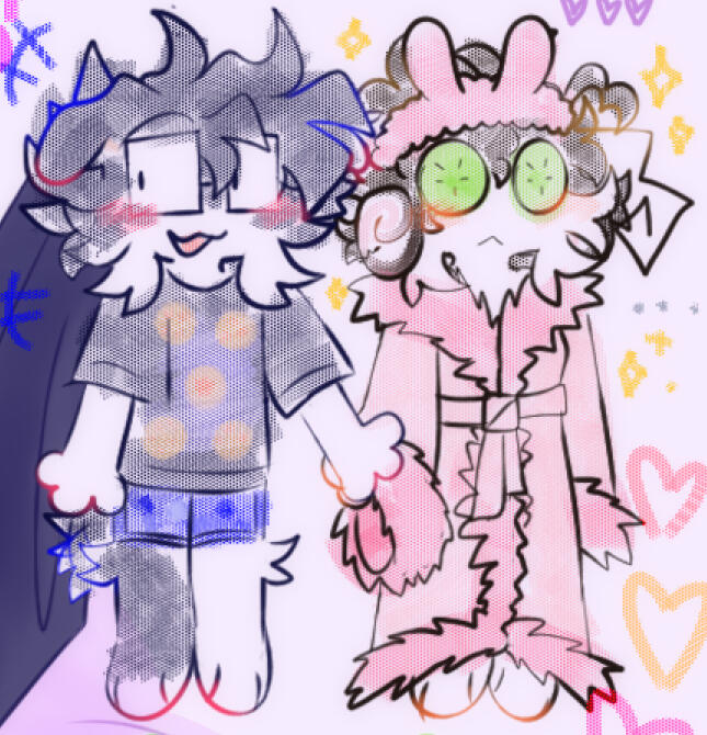 doodly style (🔥). just a sketch briefly colored using a "dotty" brush. preferred for simpler chars. its slightly diff from my usual chibi style, eyes r simplified and based off my normal style. can be busts or headshots too,palettes are limited (not all colors are colorpicked from ur char)