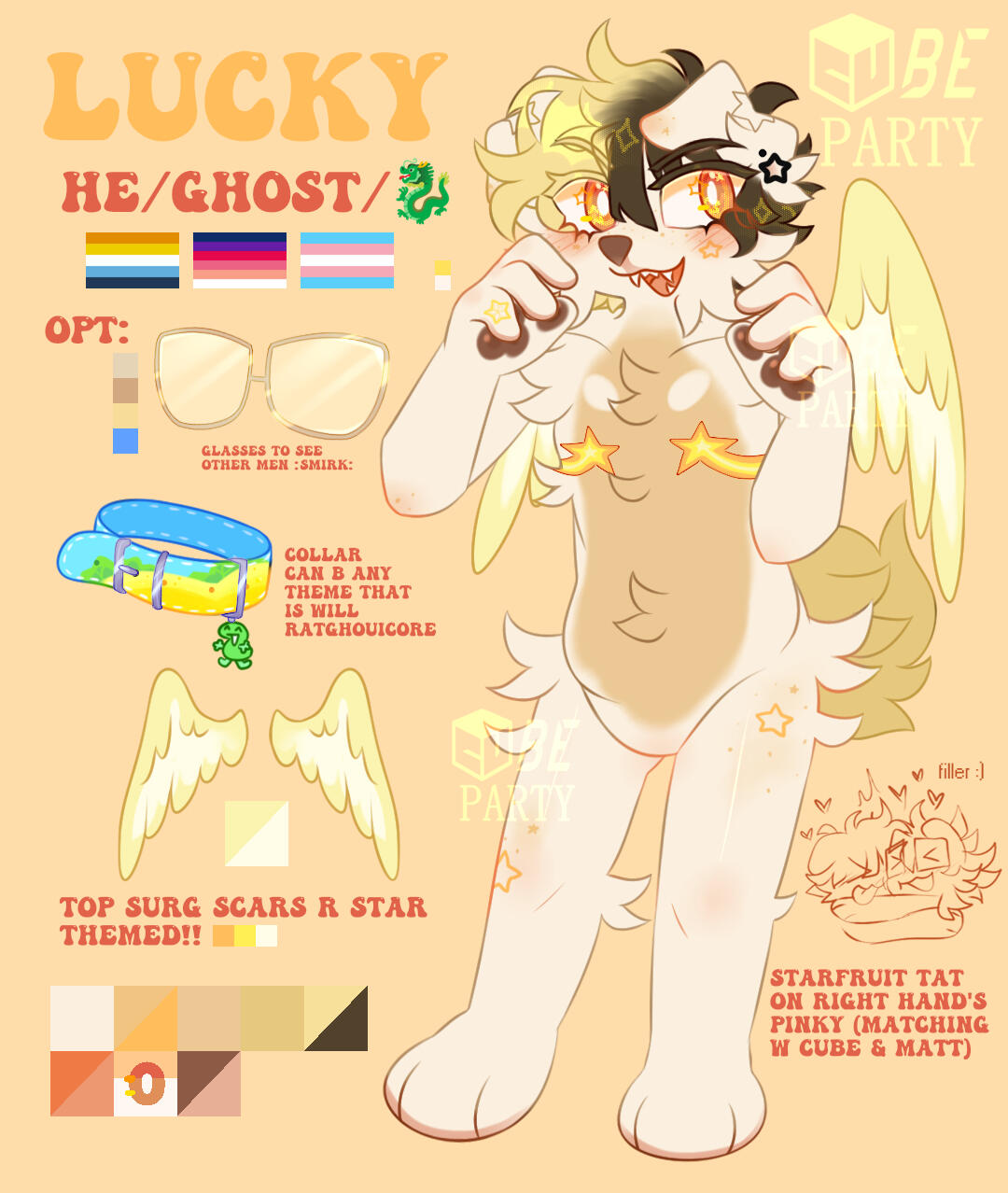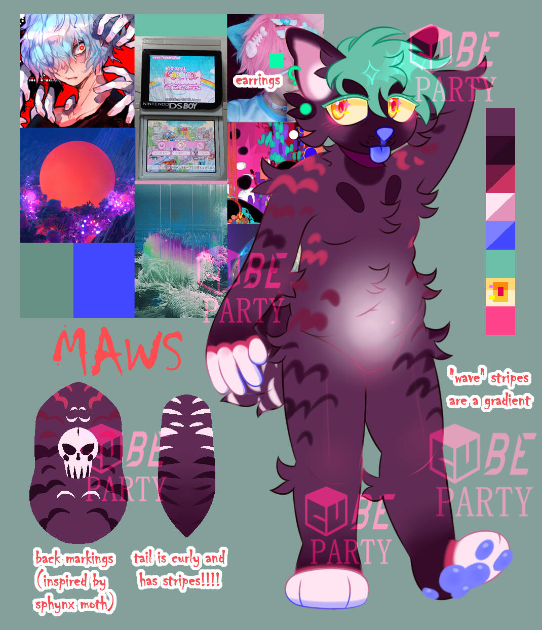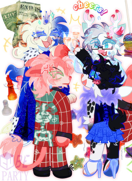 the mini refs comes with palette,name/pronouns/flags and some extras (items,mouth or eye details if needed) or design notes if u want. i wont add a moodboard to the bg this time (ur 100% allowed to add one manually) as the canvas size is alot smaller$20-$30 USD (counting extras and such)